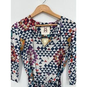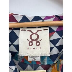 Figue 100% Silk Shirt Dress Aztec Contemporary Print Size XXS NWT