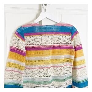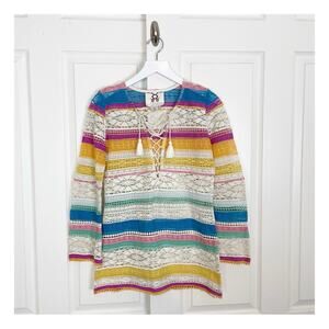 new without tags Clarita Striped Crochet Lace Tunic Top from Figue. popover silhouette with lace-up / tassel. 100% cotton. **new without tags - purchased for a vacation but never worn - no flaws**