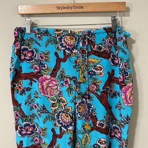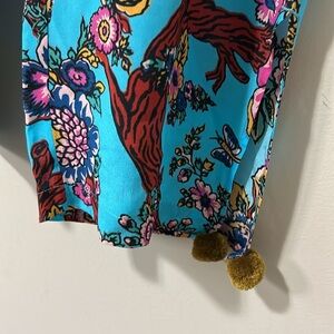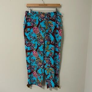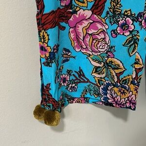 Figue Goa Pants Silk Crepe de Chine Drawstring Waistband Cropped Pom Pom Sz XS