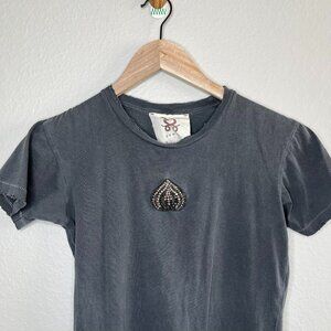 Figue Gray boho Embellished distressed Tee XS Cotton Womens Casual T-Shirt