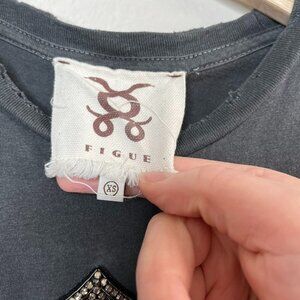 Good preloved condition Figue Gray Embellished distressed Tee XS Cotton Womens Casual T-Shirt