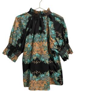 Figue Halima Top Blouse Smocked Floral Short Sleeve Size XL NWT