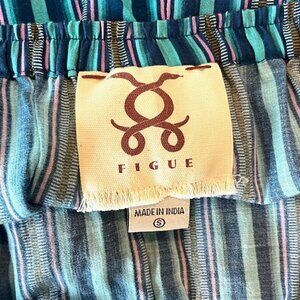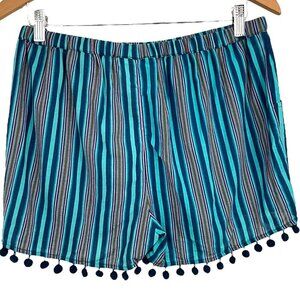 Figue Maja Shorts Size S Blue Striped Cotton Pom Pom Trim Drawstring Pockets