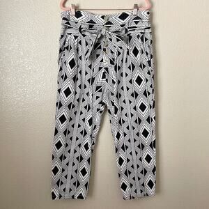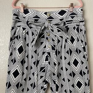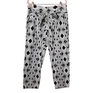 Figue Pants Womens Medium Black White Argyle Tribal Paperbag High Rise Boho