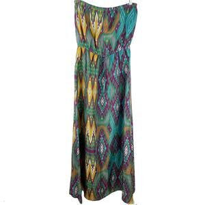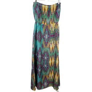 Figue Silk Maxi Dress Strapless Tropical Resort Mexico Vibes Teal Purple S