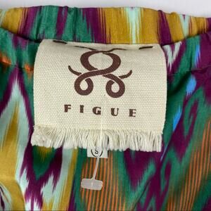 This Figue silk strapless maxi dress features a bold teal, purple, and yellow print that channels effortless tropical getaway style. Perfect for resort wear, Mexico vacations, or summer events, its flowy silhouette and luxurious silk fabric make it a standout piece for warm-weather occasions. Women’s size Small.