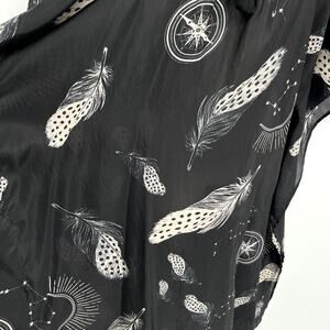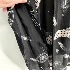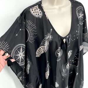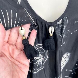 Figue Silk Midi Length Tassel Kaftan Sz L Black Tan Sheer Celestial Swim Coverup