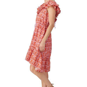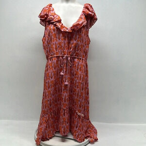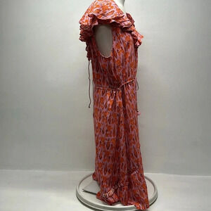Figue Tahlia Midi Dress Cotton Ruffle Tie Waist Lace Up Back Pink Red Size XL