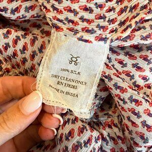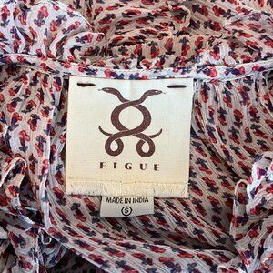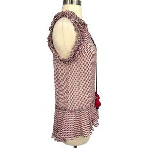 Figue Vera Tassel Top in Multi Red Ruffled Sheer Size S 100% Silk Sleeveless