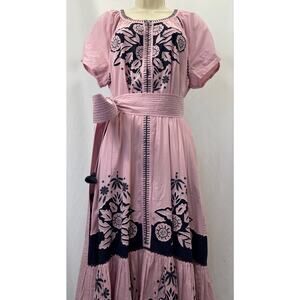 Figue Willa Dress in Dusty Rose - Size Large, Embroidered Cotton