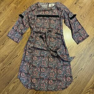 Figue bohemian unlined 3/4 sleeve multicolor print light weight dress XS cotton
