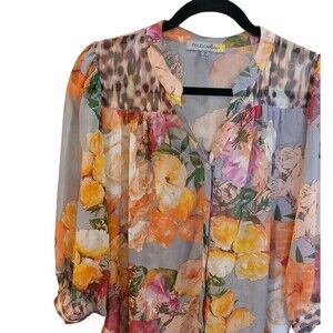 Figueroa & Flower Blouse Womens Size Medium Floral Peasant Boho Sheer Button Up. This is a sheer Tunic