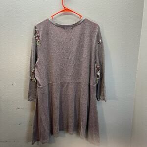 Figueroa & Flower Embroidered Floral Boho Tunic Top SZ 2XL Asymmetric V Neck