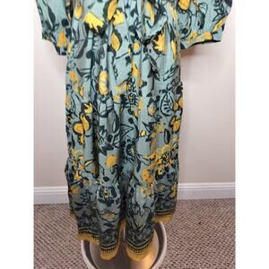 Figueroa + Flower floral belted puff sleeve maxi dress . Size L. 80% rayon, 20% nylon. (21021)