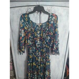 This Figueroa & Flower dress is a must-have for any bohemian-inspired wardrobe. The floral pattern and 3/4 sleeves create a feminine and romantic feel, while the ruffle accents and sheer material add a touch of playfulness. The dress features a round neckline and pullover closure, making it easy to wear for any occasion.