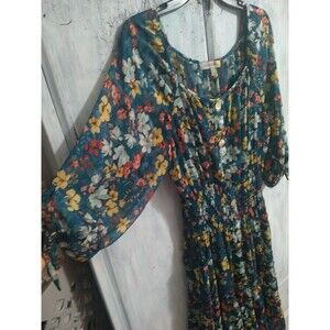 Figueroa & Flower Floral Ruffled Sheer Dress Xl Boho Feminine Cottage Core