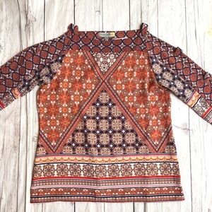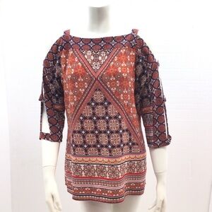 Figueroa & Flower Lena 3/4 Lattice Sleeve Top Size Medium. Condition is new with boutique tag attached, no brand tag. From smoke free home. Stock photo is to show fit only.