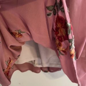 Features: two pieces-comes with slip underneath, sheet, v-neck, ruffle sleeves, stretch