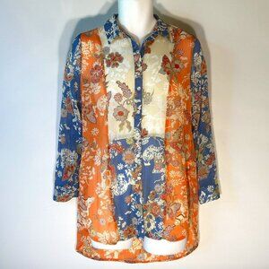 Figueroa & Flower NWT SZ S Patchwork print button front loose tunic Preppy Boho Timeless