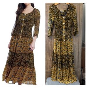 Figueroa & Flower Small Leopard Tiered Maxi Dress Cami lined Attached