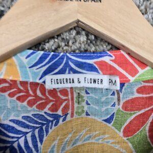 Figueroa & Flower Top Womens PM Petite Medium Multicolored Sheer Button Blouse