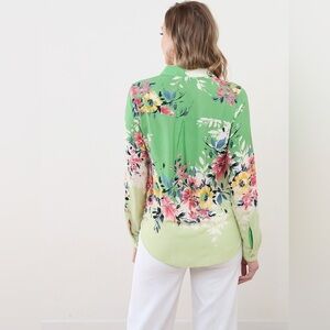 Figueroa & Flower Women Button Front Shirt XL Green Floral Bohemian Contemporary
