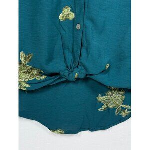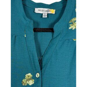 Figueroa & Flower Women’s Boho Embroidered Peasant Button Front Tunic Top Size S
