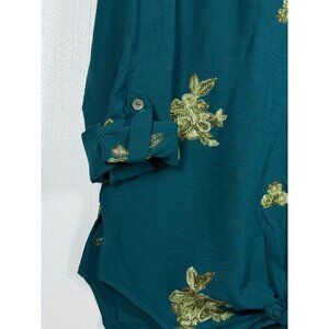 This elegant teal shirt by Figueroa & Flower features intricate floral embroidery, offering a sophisticated touch to your wardrobe.