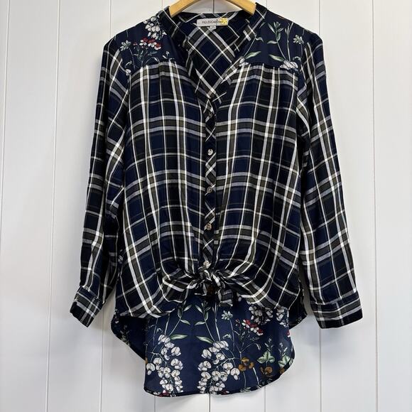 Figueroa & Flower Womens Boho Indie Plaid Floral High Low Top Size M Cottage