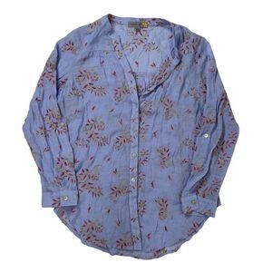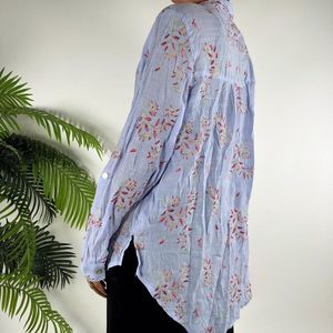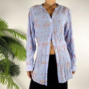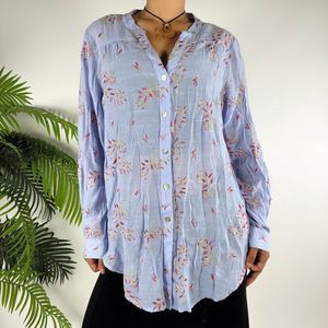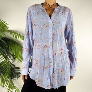 Womens Floral Embroidered Cottagecore Coastal Chic Button-Up Blouse / L