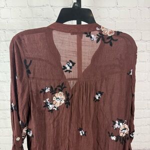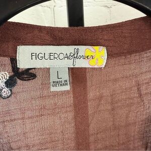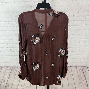 Figueroa and Flower shirt size large. Brown semi sheer, long sleeves. Embroidered flowers. Good condition. Smoke free home.