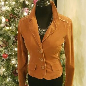 A "true RUST" colored blazer that you can wear as a blouse with a nice tank top/camisole in the inside. It is "frayed" that adds a bit od edginess to your classy look.