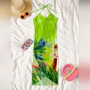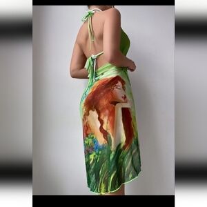 Figure Graphic Halter Tie Back Asymmetrical Hem Cover Up Dress