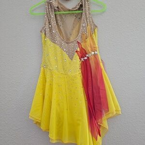 Figure Skating Dress,Girls Women Splice with Irregular Hem Performance Competiti