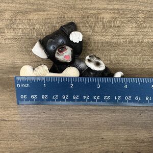 Description: Figurine Black Dog Laughing Dog Happy Bone Laugh Much Sign Decor 2.5"