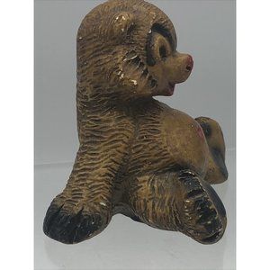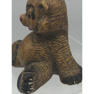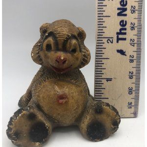 Figurine Panda Bear Ceramic? Red Navel & Nose 2" Reclined Pose Smile Unique