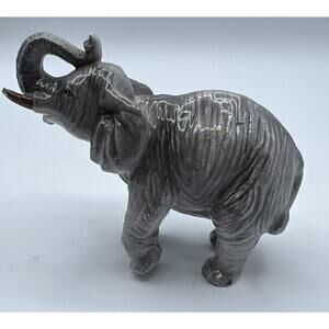 Figurines Elephant Gray Walking Porcelain Glossy Trunk Up Good Luck