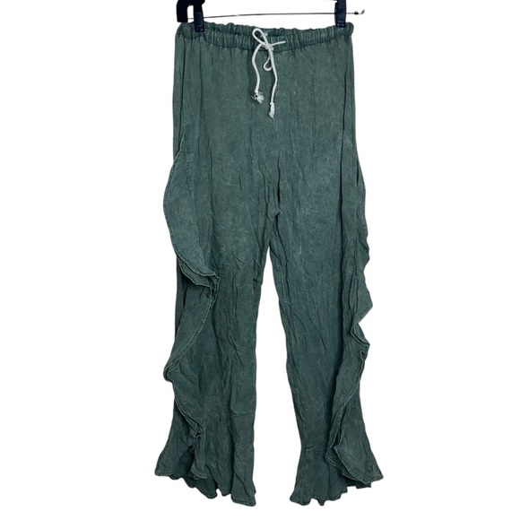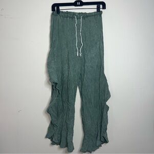 Figwood North Shore Green Ruffled Rayon Pull On Harem Pants Size Small
