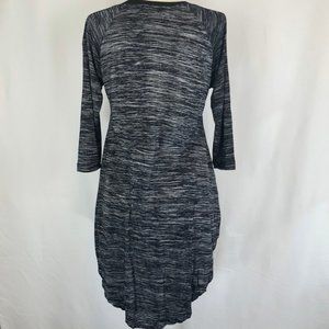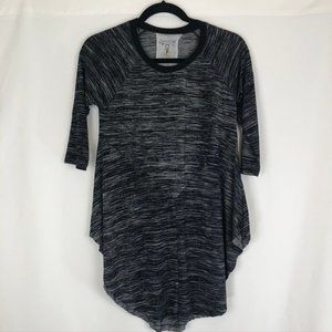 Figwood wangari 3/4 sleeve high-low 90% cotton 10% spandex top. This top has a super flattering fit. From Banyan Tree in Cleveland, Ohio. Size small. Grey, black and white heather.
