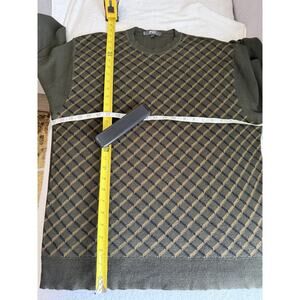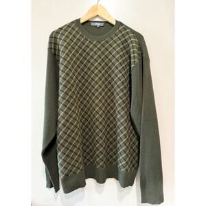 Fiji Mens Sweater Large Olive green Plaid Made In Italy Relaxed soft Size L