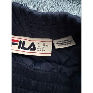 Elevate your athleisure vibe with these Fila track pants! These navy blue pants feature a stylish white stripe down the sides and a comfortable, wide-leg design. The unique snap-up sides add a customizable touch, allowing you to adjust the fit and style. The embroidered Fila logo adds a touch of iconic branding. Perfect for a casual workout, running errands, or a relaxed day out, these pants offer both comfort and style. Rock these at your next coffee run or weekend hangout for a cool, retro look.