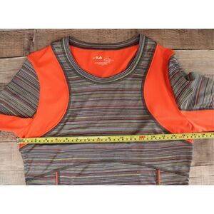 Fila Activewear Sportswear Grey Striped Fitted Running Jogging Top Shirt MEDIUM. Fitted for sleek performance with flat seams. Polyester blend. Machine washable. Item in excellent condition. No known rips, tears, holes, stains or defects.