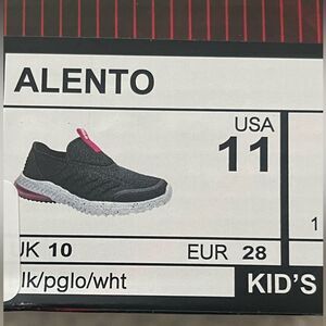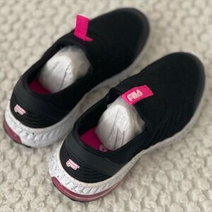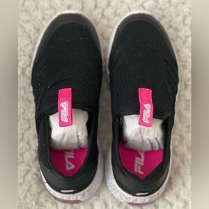 Fila Alento, Kids Running Shoes, Black/Pink/White Easy Pull On Lace Free Size 11