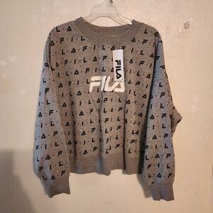 Fila All Over Logo Crop Crewneck Sweater Size 3X NWT, Gray/Black