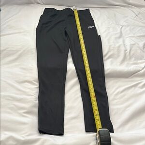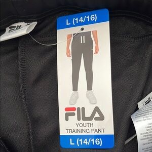 Experience comfort and style with these Fila black joggers, featuring a drawstring waistband and a tapered fit. The elastic cuffed ankles add a modern touch, making them perfect for both athletic activities and casual outings. Enjoy the relaxed fit crafted from a soft sweatpant material, ideal for all-day wear.