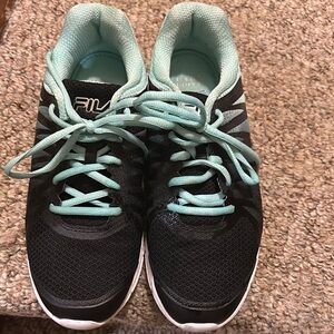 Fila Black and Green Athletic Shoes with Breathable Mesh
