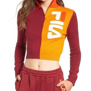 Fila Fabiana sweater Retro style Orange Red pullover 1/4 zipper sweater size M