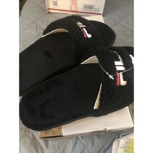 Fila Fuzzy Drifter Shearling Slide Black Sandals NWT Size 6.