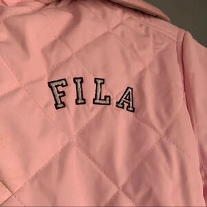 Fila Girls Reversible Hooded Varsity Wool Blend Puffy Quilted Jacket Zip-Up Sz L