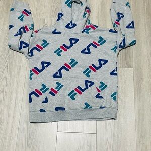 Youth stylish and comfortable with this Fila gray hoodie featuring vibrant blue and pink accents. Perfect for casual outings. Size 14/16